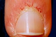 Tırnak kenarlarında kılcar damar kırmızılıkları yangılı romatizma (Rheumatoid arthritis), lopus (SLE), deri ve çizgili kaslarda iltihaba neden olan, kaslarda ağrı ve kuvvet kaybı, deride sertleşme (kollajen sertleşmeleri) (scloroderma) ve deride eritematöz lekelerle belirgin dermatomiyozit (dermatomyositis) işareti olabilir.